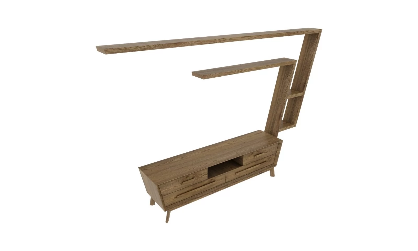 The Picante TV unit brings a modern touch to your living room with its rising slanted corners and sharp lines that convey the strength of wood. Featuring an oak veneer body and carefully brushed doors, it is an essential complement to the series. Combining elegance and functionality, Picante opens the door to adding a unique aesthetic to your living space.