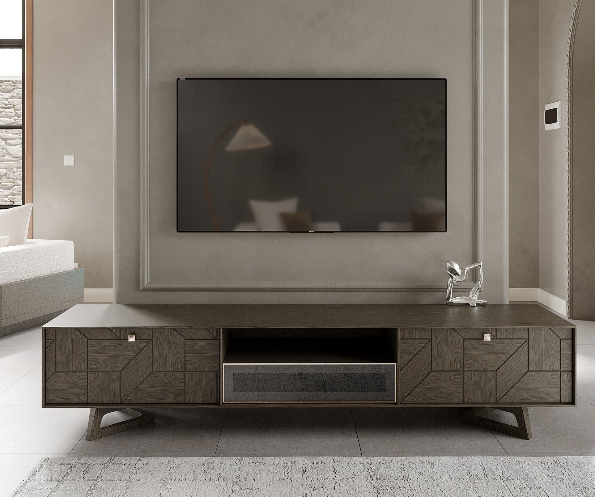 Marcado ailesi, modern tasarımı ve keskin hatlarıyla öne çıkar. TV ünitelerinin kapaklarında doğal meşe ağacı ve özenle fırçalama işlemi kullanılarak işlenmiştir. Gövdesini saran meşe dokusu, orta kısımda yer alan cam bölme ve köşeli kulp detaylarıyla birlikte, mekânınıza modern bir estetik ve üstün kalite katıyor. Marcado, işlevselliğiyle de dikkat çekiyor ve evinizdeki yaşam alanınızı tamamlamak için ideal bir seçenektir.